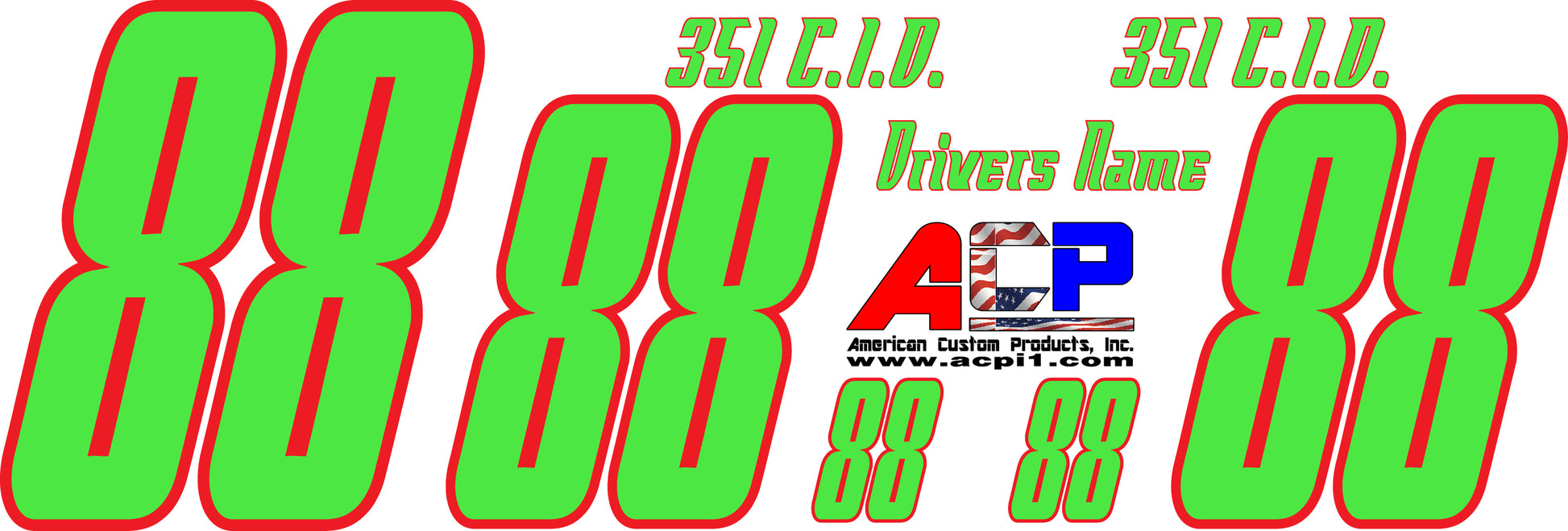 Two color custom race car number decal package